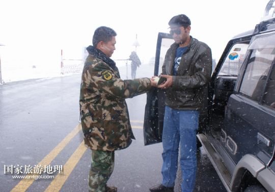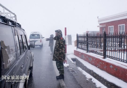 國(guó)家旅游地理 新疆喀什8月15日訊 8月14日,紅其拉甫邊檢站執(zhí)勤哨兵引導(dǎo)車(chē)輛通行。8月14日,新疆塔什庫(kù)爾干塔吉克自治縣迎來(lái)降溫降雪天氣,積雪厚度達(dá)5厘米,溫度降至零攝氏度左右。據(jù)了解,因連續(xù)降雪,314國(guó)道海拔5100米的中巴邊境紅其拉甫口岸附近約20公里路段交通受到影響。 /新華社發(fā)(韓廣寧攝)