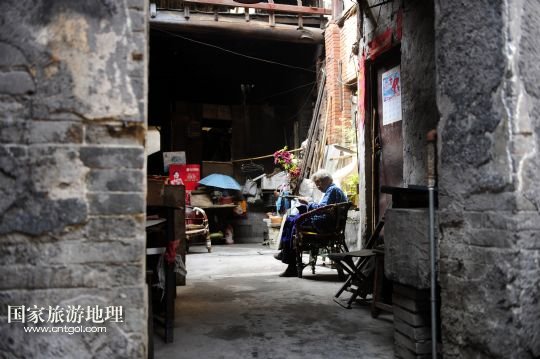 國家旅游地理 湖北襄陽9月25日訊 襄陽“九街十八巷”中的陳老巷(9月13日攝)。陳老巷坐落在湖北省襄陽市漢水之濱的樊城。據(jù)說,清朝末年有一位陳姓老人住在巷南口,賣雜貨,他在貨攤旁用一塊木板糊層白紙,上書“陳老人巷”四個字作標(biāo)記,陳老巷因此得名。百年來的陳老巷一直是襄陽熱鬧繁盛的處所。它以悠久的歷史、厚重的文化和曾經(jīng)流金淌銀的富饒,在古城襄陽的“九街十八巷”中大名鼎鼎,也因完好的保存成為襄陽這個歷史文化名城的重要遺存。