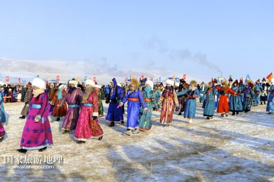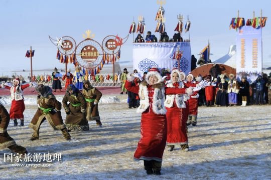 國(guó)家旅游地理 內(nèi)蒙古呼倫貝爾12月23日訊 12月23日,演員在冰雪那達(dá)慕上表演舞蹈。當(dāng)日,內(nèi)蒙古第十四屆冰雪那達(dá)慕暨巴爾虎草原祭火文化節(jié)在內(nèi)蒙古自治區(qū)呼倫貝爾市陳巴爾虎旗開幕,吸引了約2萬人參加。本屆冰雪那達(dá)慕將冰雪主題與獨(dú)特的民俗風(fēng)情巧妙結(jié)合,活動(dòng)包括祭祀儀式、實(shí)景表演、歌舞演出和傳統(tǒng)體育競(jìng)技等。 /新華社記者 金宇 攝