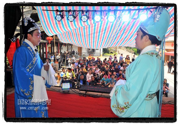 國家旅游地理 江西上饒5月1日訊(特約記者 王國紅攝影報道)5月1日,婺源縣賦春鎮(zhèn)源頭村景區(qū),村民和游客在景區(qū)村口圍觀觀看安徽黃梅戲《婆媳情》。“五一”小長假期間,江西省婺源縣賦春鎮(zhèn)源頭村景區(qū)邀請了安徽黃梅戲劇團在村門口為村民表演輪翻上演黃梅戲,讓老百姓足不出戶就可以享受到豐富的文化大餐,促進了農村精神文明建設,受到群眾的廣泛歡迎,讓大家歡快過上“五一”勞動節(jié)。