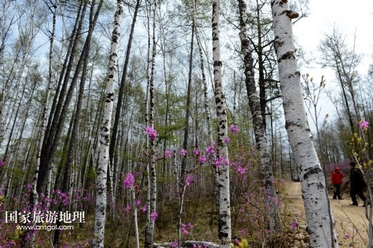 內(nèi)蒙古阿爾山市白狼林區(qū)冰雪消融、杜鵑綻放(5月14日攝)。