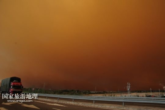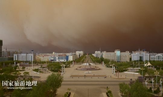 國家旅游地理 甘肅玉門5月23日訊 5月23日,在甘肅玉門市,突如其來的沙塵籠罩了整個城市。當(dāng)日上午,受新疆低槽冷空氣的影響,甘肅玉門境內(nèi)天空出現(xiàn)罕見的云層奇景和沙塵天氣,原本非常晴朗的藍天,霎時天昏地暗,同時伴有6至7級西風(fēng),能見度只有500米。新華社發(fā)(楊旭升 宋常青 攝)