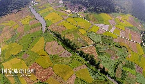 國(guó)家旅游地理 廣西柳州8月21日訊 8月20日在廣西柳州市融安縣泗頂鎮(zhèn)泗頂村航拍的田園風(fēng)光。“立秋”過(guò)后,地處桂北山區(qū)的廣西柳州市融安縣進(jìn)入稻谷收獲的季節(jié),金黃的稻田與原生態(tài)的山水風(fēng)光構(gòu)成一幅美麗的豐收?qǐng)D。新華社發(fā)(譚凱興 攝)