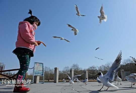 國(guó)家旅游地理 寧夏銀川3月10日訊 3月9日,在銀川市燕鴿湖,一位小朋友在喂食紅嘴鷗。近日,隨著寧夏銀川市各湖泊、濕地冰面融化,銀川市興慶區(qū)燕鴿湖迎來數(shù)百只紅嘴鷗在湖面飛翔覓食。近年來,銀川市持續(xù)加大對(duì)濕地的保護(hù)與恢復(fù),每年春季都有大批候鳥光顧,成為銀川市一道美麗風(fēng)景。 /新華社記者 王鵬 攝