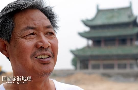 6月18日,陜西省文物保護員李潤倉在向游人介紹宋祠修繕情況。今年已63歲的他30年如一年,義務(wù)看管保護唐塔和宋祠,被傳為佳話。