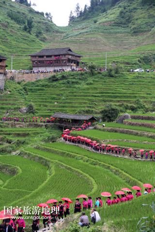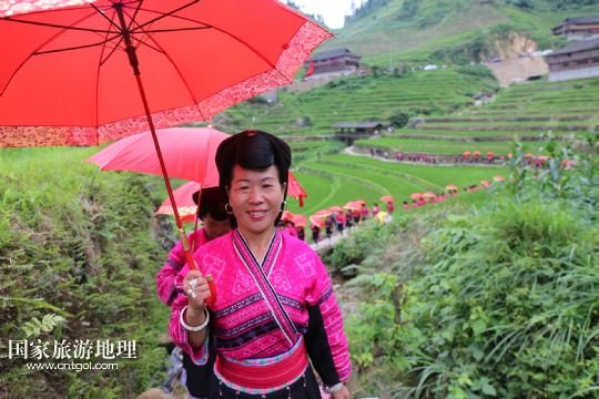 每年農(nóng)歷五月十四日、十五日是廣西桂林龍勝各族自治縣泗水鄉(xiāng)潘內(nèi)瑤寨紅瑤同胞與親朋好友聚會的日子,亦稱當(dāng)?shù)噩幷?ldquo;紅衣節(jié)”。紅瑤同胞相約在這期間開展唱瑤歌、評寨花、傳統(tǒng)刺繡、打旗公等傳統(tǒng)特色活動。紅瑤是瑤族的一個支系,因喜穿紅色衣服而得名。 /新華社發(fā)(石農(nóng)兵 攝)