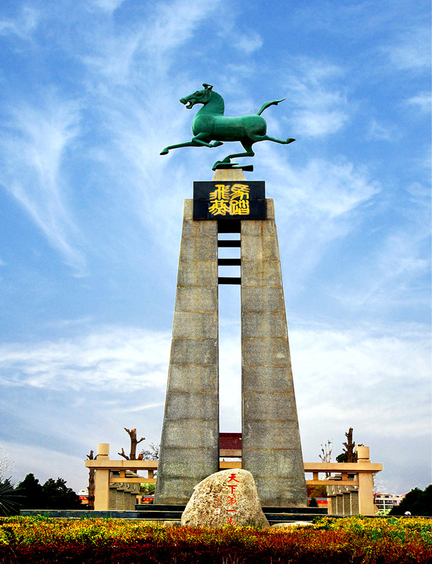 圖為中國旅游標(biāo)志馬踏飛燕出土地、全國重點(diǎn)文物保護(hù)單位、國家4A級旅游景區(qū)——武威雷臺景區(qū)